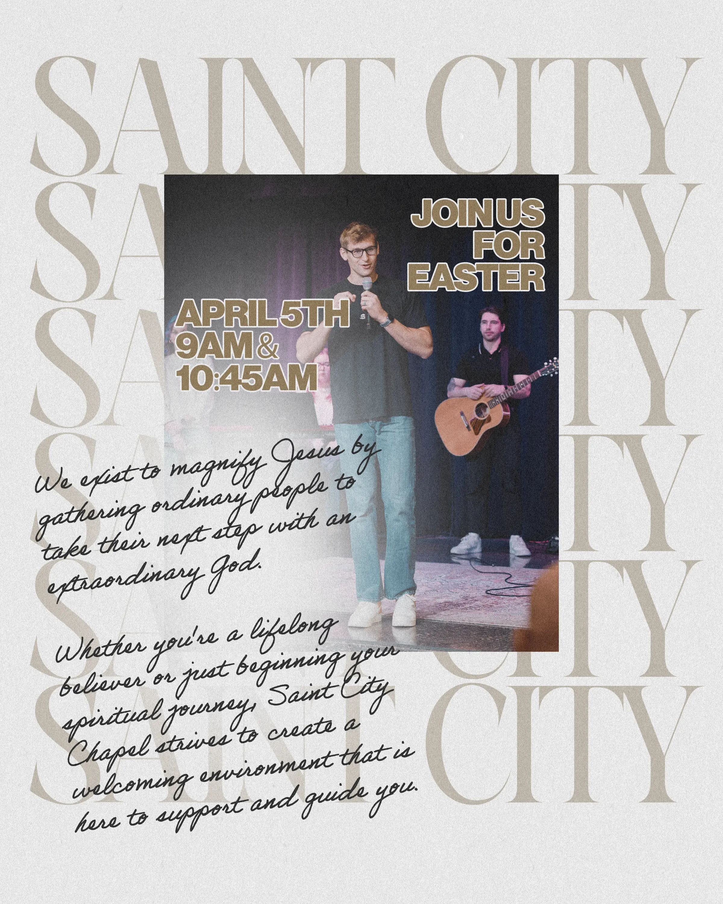The result was a unified campaign that equipped Saint City Chapel with clear, compelling visuals across digital and social platforms, helping create anticipation and engagement leading into Easter weekend.